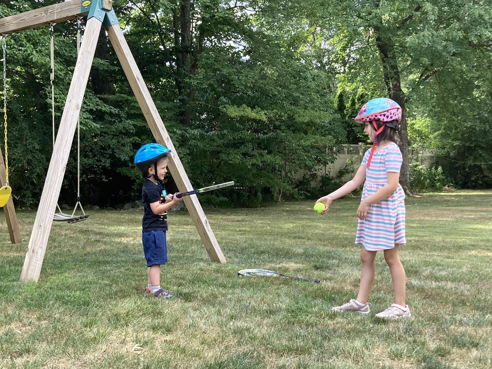 Teaching her brother about fire safety